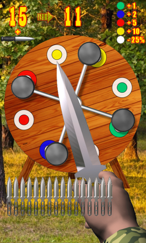 In the upper left corner of the screen, you'll be asked to score a certain number of points. If you complete the task, you'll receive an extra knife. This will allow you to make more throws and earn more points.